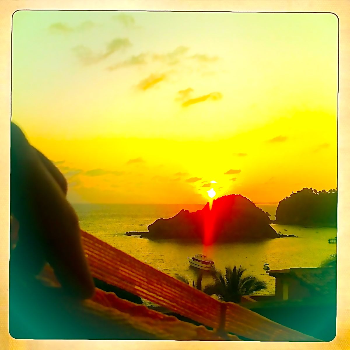 Sidste aften i troperne lå jeg og gyngede i den, mens jeg så solen gå ned. Jeg gyngede så højt, at det næsten føltes som om, at jeg blev slynget ud over det store, stille hav. Men jeg var ikke bange, for det hele var så fantastisk smukt, at det føltes mere magisk end farligt. Næste morgen stjal jeg mig til et ekstra kvarter i køjen med helt rigtig musik i ørerne, mens guldfisken var i bad. Det var stadig mørkt, og stjernerne lyste meget klart ned på en stor båd, som havde ligget ved vores strand i et par dage. Jeg overvejede muligheden for at flygte fra hjemrejse og skynde mig ned til båden, så jeg kunne høre, om der mon var plads til en enkelt helspekulerende type, som bare gerne ville sejle væk. Ud i eventyret. Men jeg gjorde det ikke. Og det var ikke kun fordi, jeg ikke turde, men også fordi jeg nu faktisk er nået til et punkt, hvor jeg gerne vil kunne dele den slags eventyr med nogen. Så jeg krammede hængekøjen farvel, stak myggene den midterste finger, lukkede øjnene, mens jeg lukkede kufferten – og så tog jeg hjem. Til virkeligheden. I håbet om at der måske også kan gemme sig en lille smule eventyr her et sted …