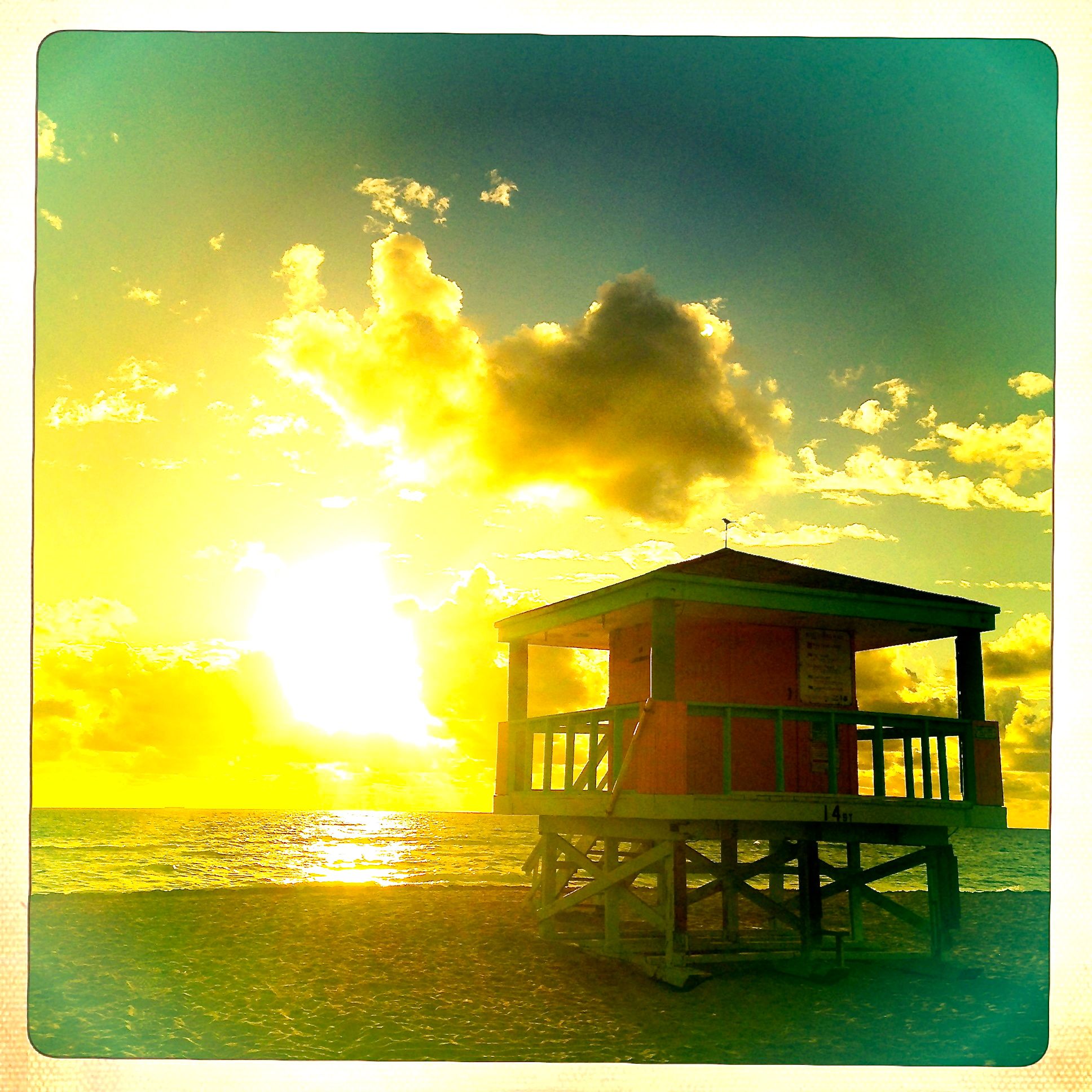 Jeg er lige kommet tilbage på hotellet efter en tidlig morgentur på stranden, hvor jeg tulrede rundt alene og ventede på, at guldfisken og hamsteren vågnede. Miami Beach klokken 7.00 er duft af barbecue, som skal spises i solen. Det er en hjemløs fyr med det vildeste dread-garn, som er venner med alle byens duer. Det er en morgen-brandert-pige i stiletter, som skvatter på fortovet og bliver samlet op af sin fyr. Det er neon i palmer med lange skygger. Det er to børn, der gynger side om side og sikkert godt kan se det fine i, at de ikke gynger helt i takt. Og så er det en ensom måge, der går rundt i sandet uden af have nogen af snakke sjovt med.