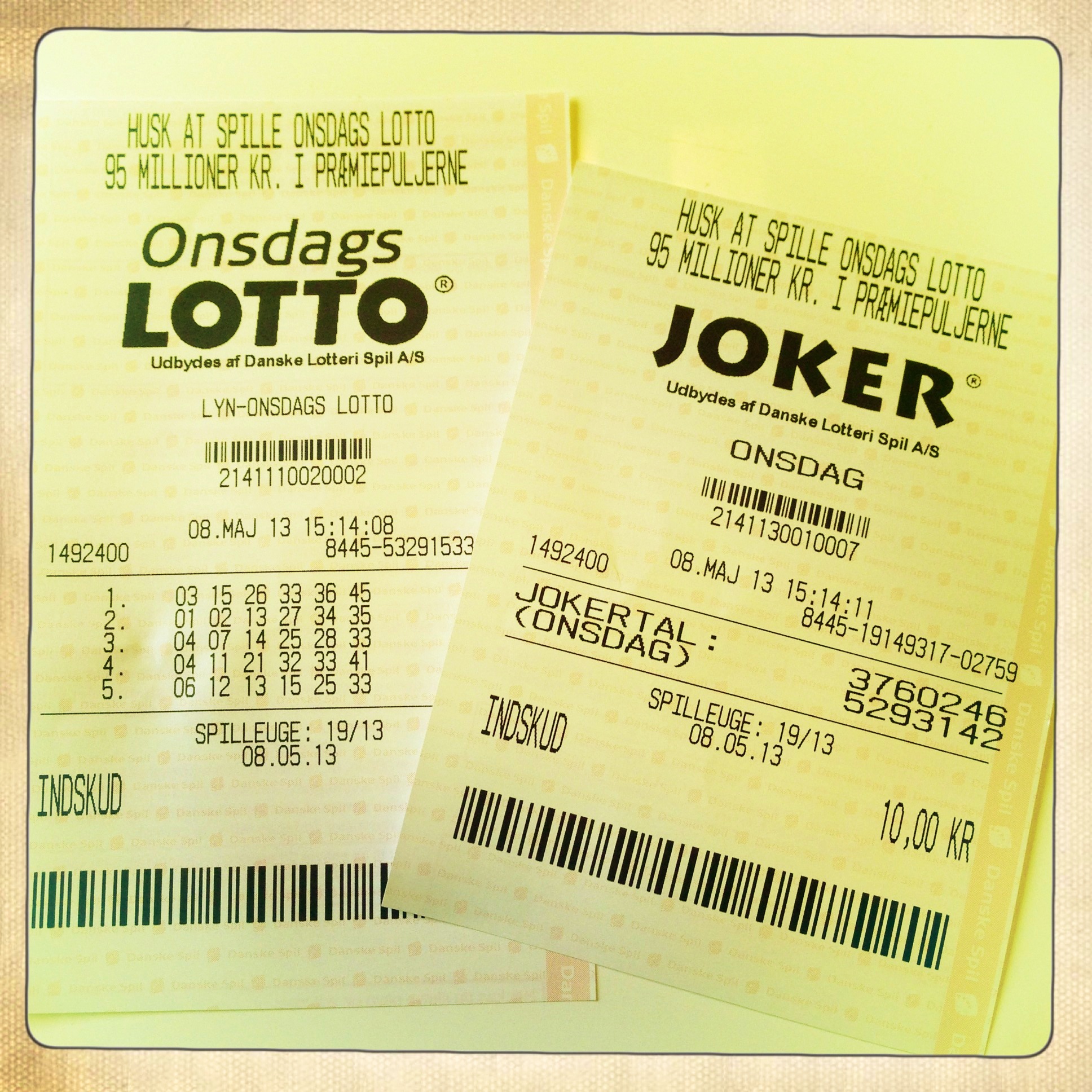 PS: Nu ved jeg godt, man skal passe på med at stille for mange krav, men når nu klatten var så enorm, tænker jeg, at heldet måske kan spredes lidt ud og ramme mig på flere områder. Så for en sikkerheds skyld har jeg givet heldet alle muligheder for at vise, hvad det kan, når det kommer til sådan noget med tal …