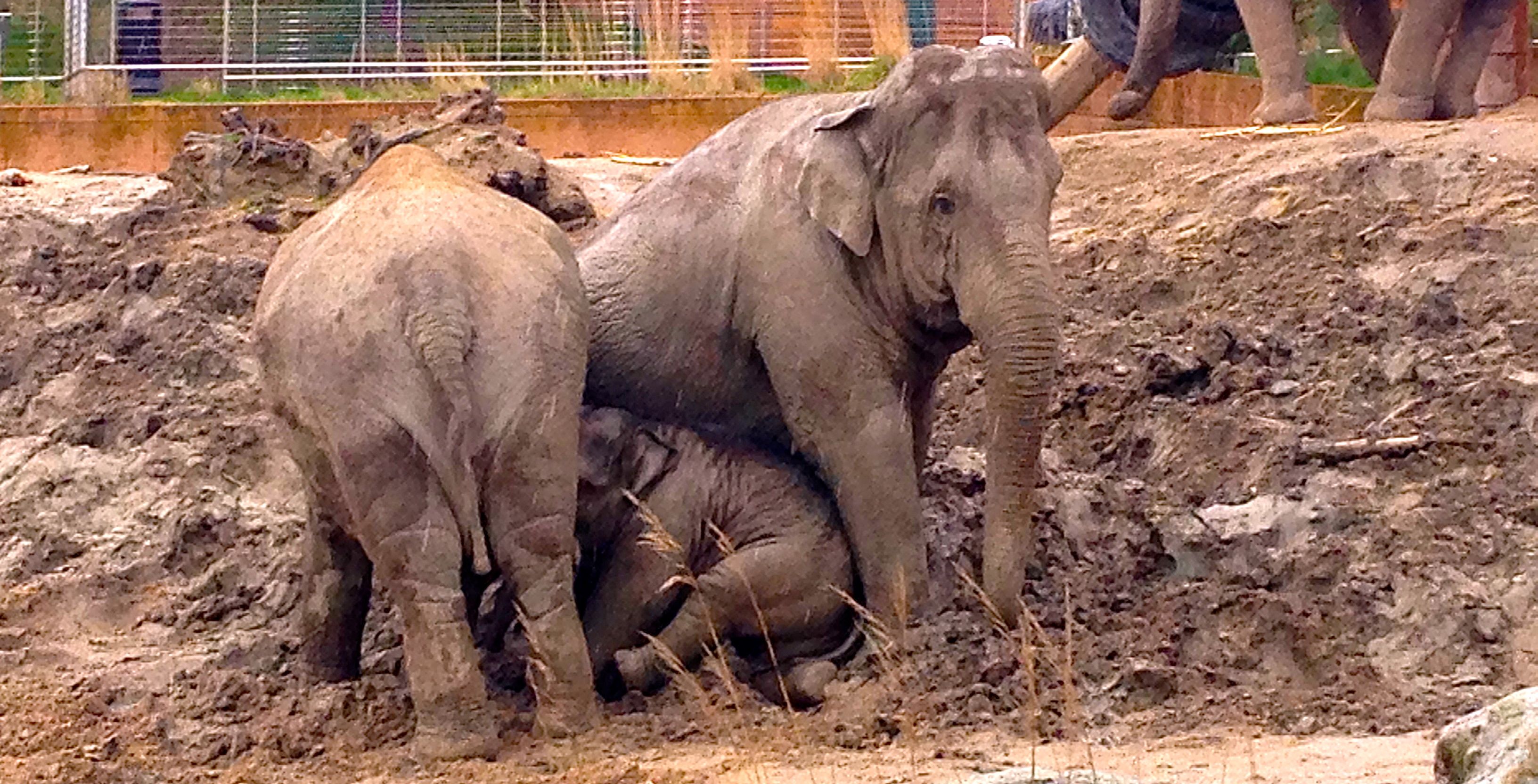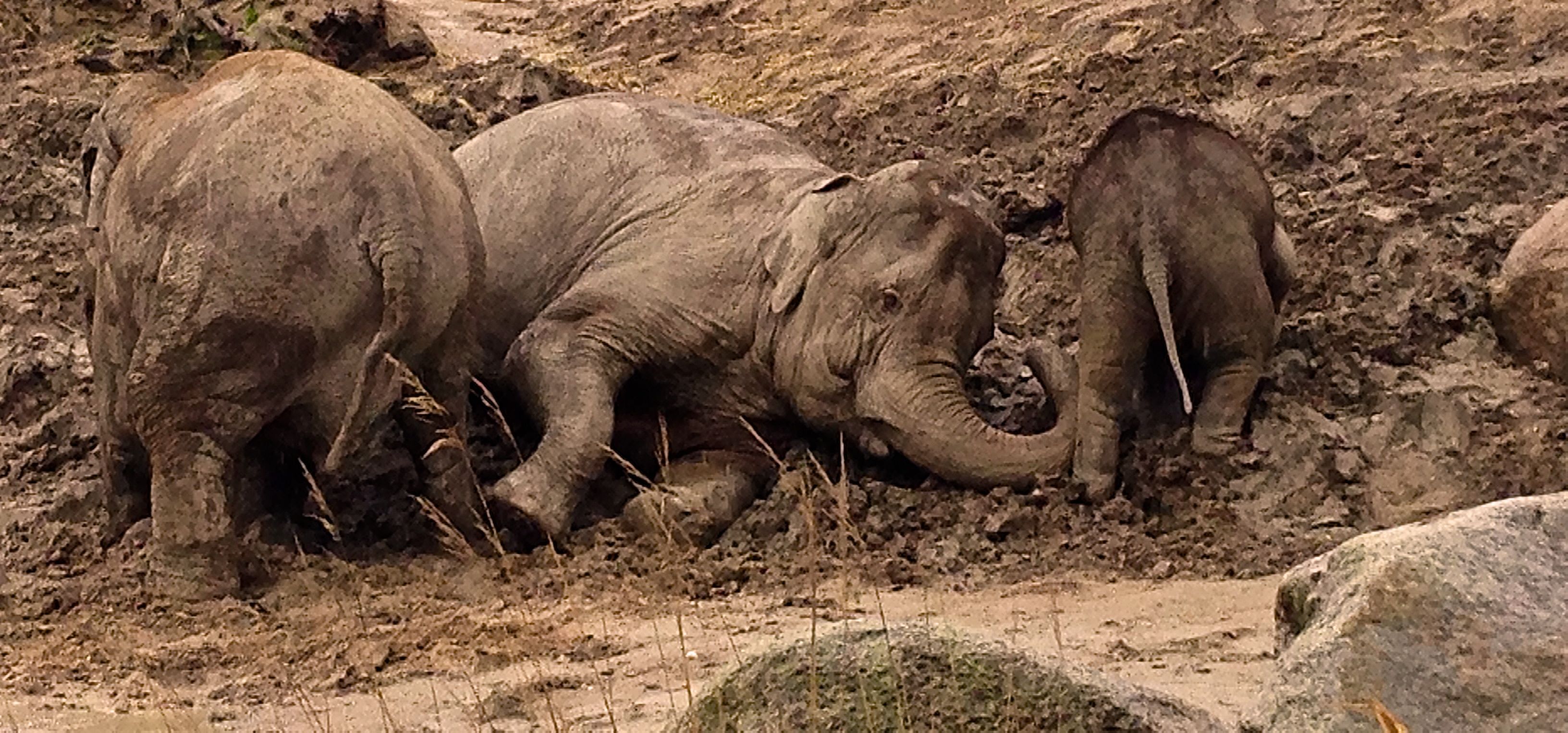 I morges var jeg en smule mellemfornøjet over, at min første feriedag var fyldt med vand, men alt gav pludselig mening på en helt ny måde, da jeg kiggede forbi vennerne ved elefanthuset for et par timer siden. Nu ved jeg, at der ikke findes dårligt vejr – kun for lidt mudder.