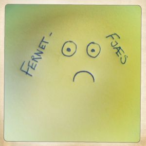 Hos en bestemt del af min omgangskreds har der længe været tradition for at stille et shot Fernet foran mig, hvis festen trænger til et festligt indslag. Det afføder nemlig frembringelsen af det efterhånden legendariske Fernet-fjæs. Mine smagsløg har en alvorlig aversion mod de grumsede dråber, og jeg kan virkelig på ingen måder forstå, at man kan drikke det med velbehag. Fernet-fjæset udløser som regel sikker applaus. Det er blevet foto-dokumenteret adskillige gange, og mine kolleger lavede endda en slags billed-tegneserie af fænomenet, som prydede kontorets opslagstavle i flere måneder og dermed gav nye kolleger og arbejdsrelaterede gæster et ret karakteristisk førstehåndsindtryk af mig.